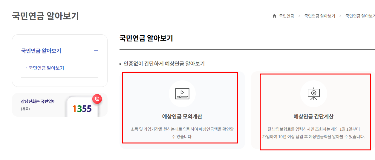 - 국민연금공단 모의계산 서비스 접속
