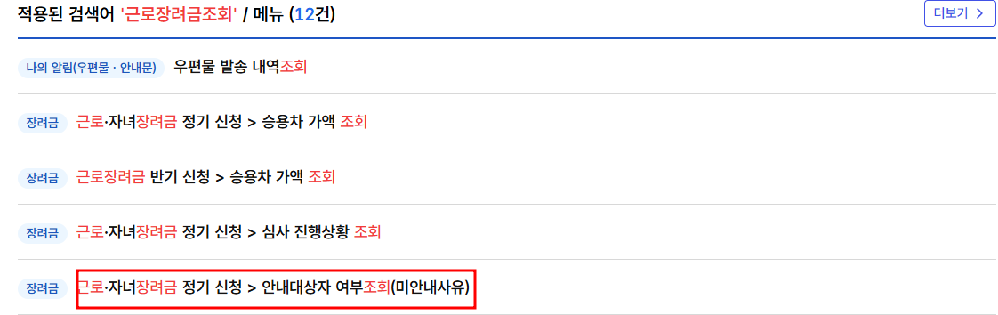 - ‘근로장려금 대상자 여부 조회’ 클릭