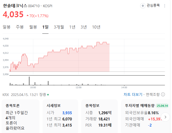 | 한솔테크닉스 | 정책 수혜 기대주 (태양광 등) | 김문수의 에너지 정책 발언과 연결 |