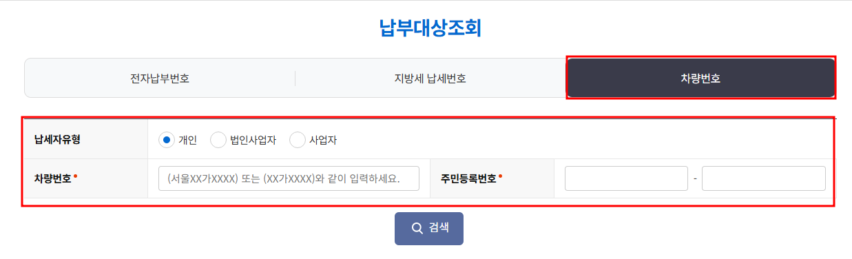 - 차량 등록번호 및 본인 확인 후 조회 가능